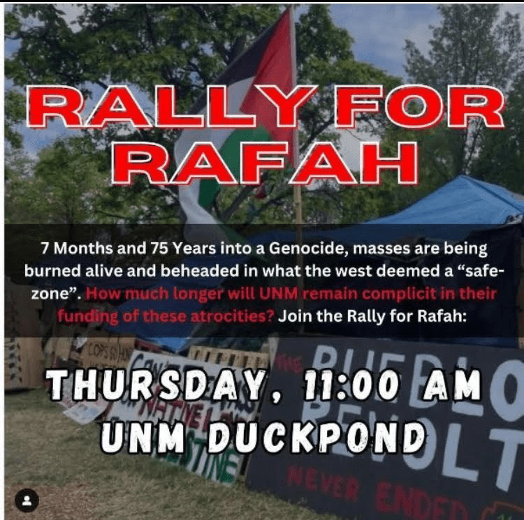 RALLY for RAFAH, Thu May 30, 11am, UNM Duck Pond