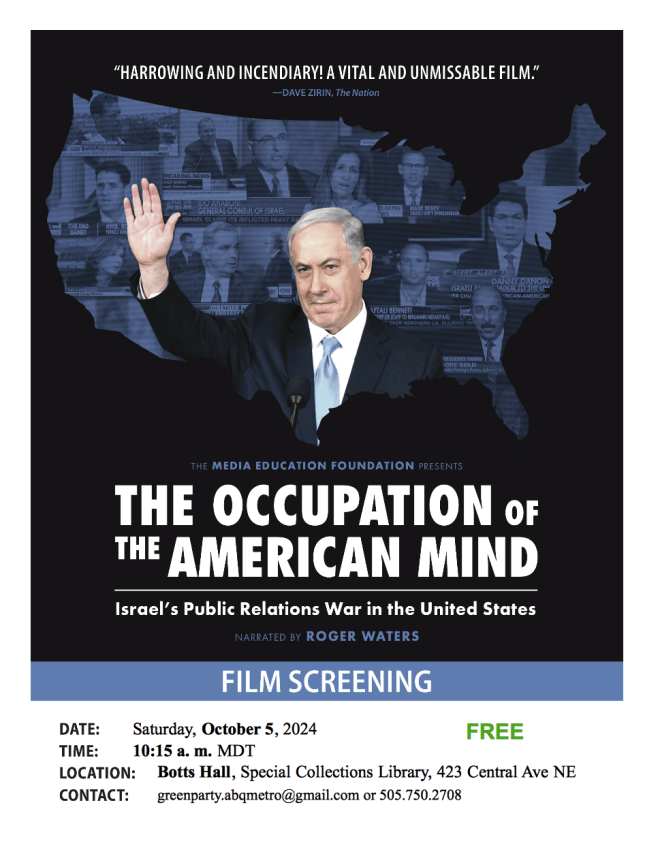 The Green Party of the Albuquerque Metropolitan Area represents Sandoval, Bernalillo, Torrance, and Valencia Counties in New Mexico, U. S. A. View all posts by gpabqmetro