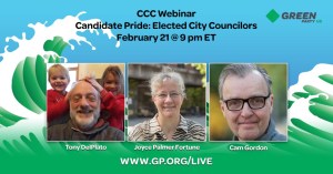 Listen to these Greens who were elected to local offices and get inspired. Webinar is Tuesday, February 21, 7:00 p. m. MST at www.gp.org/live.